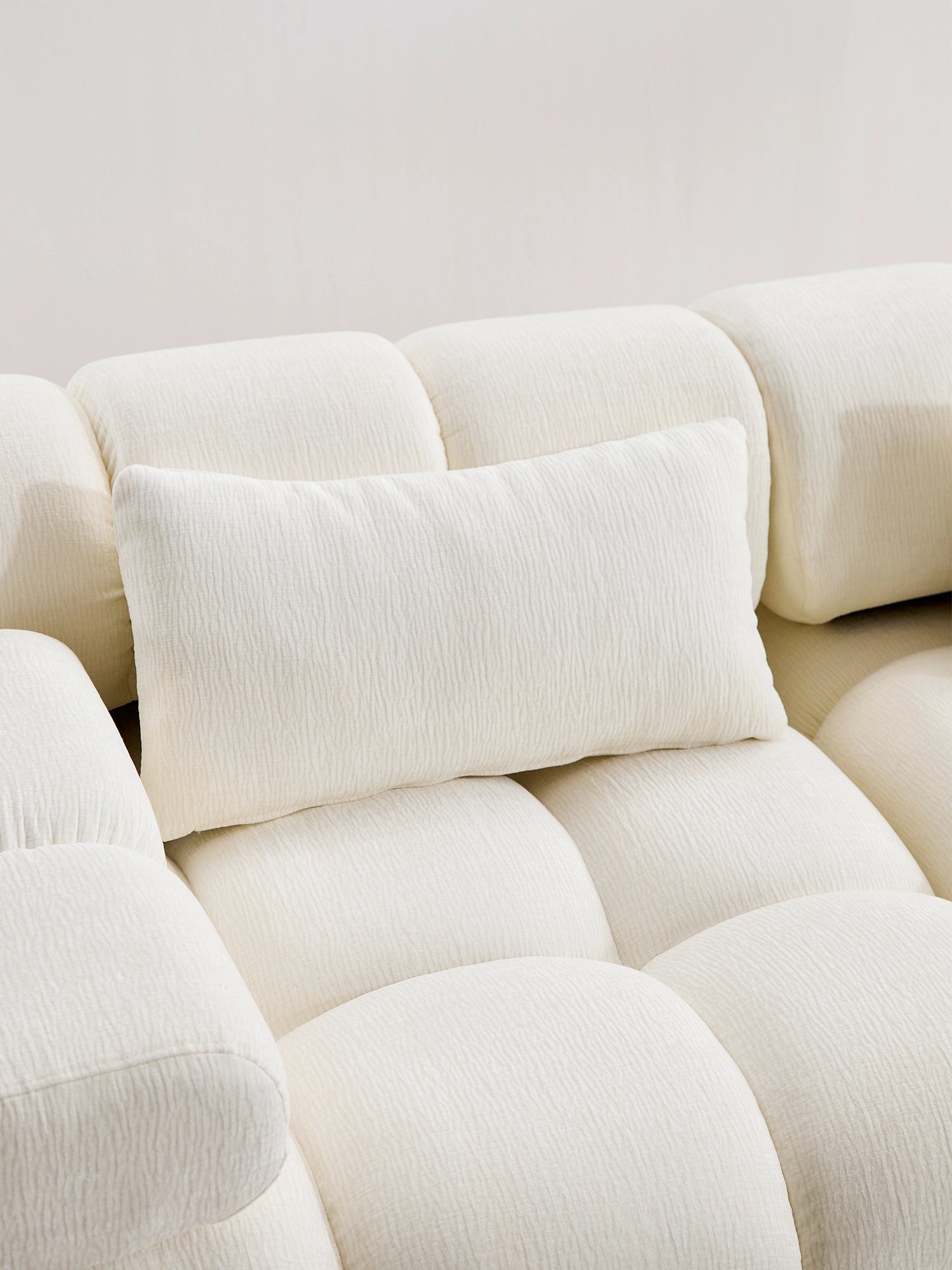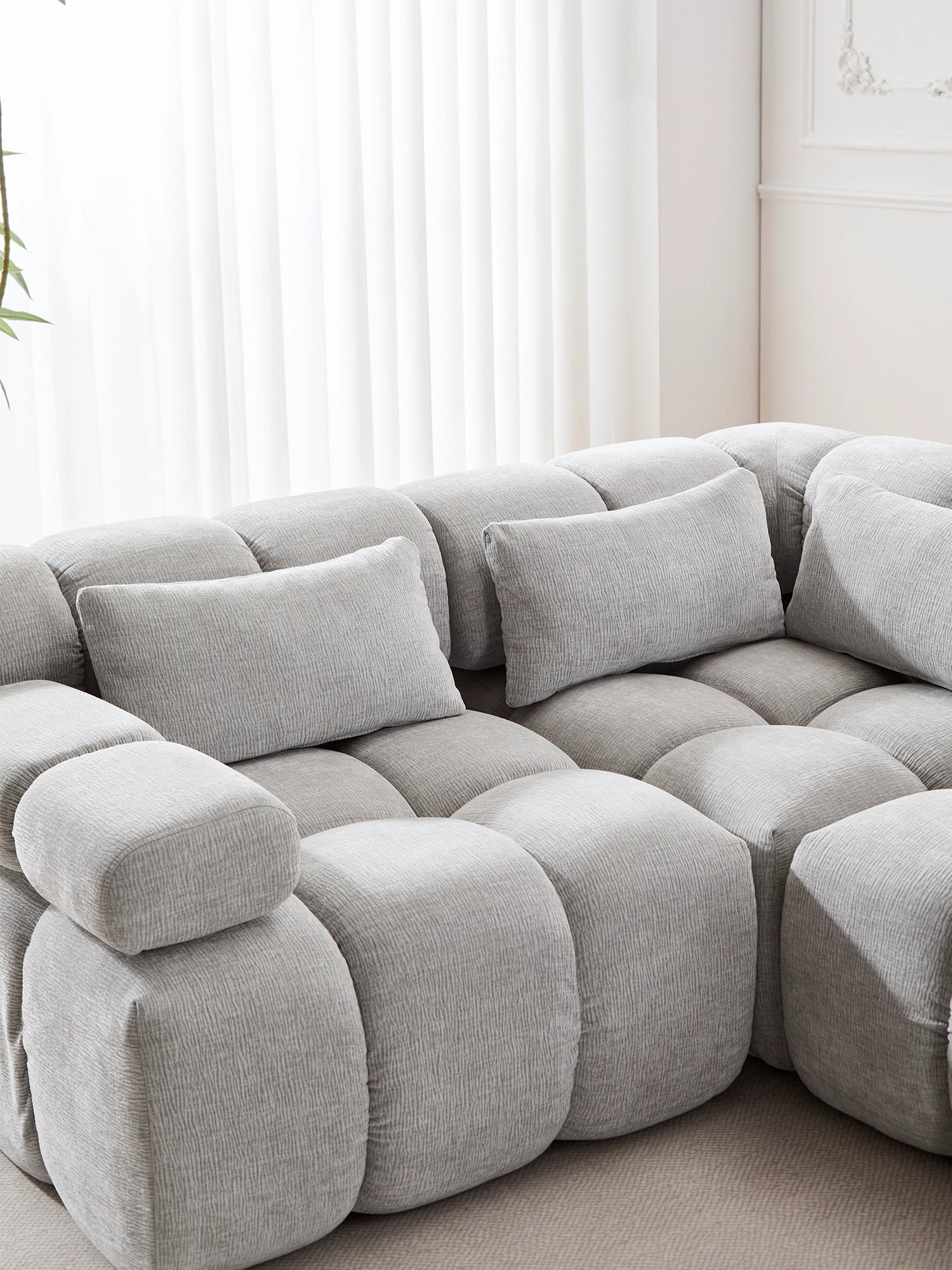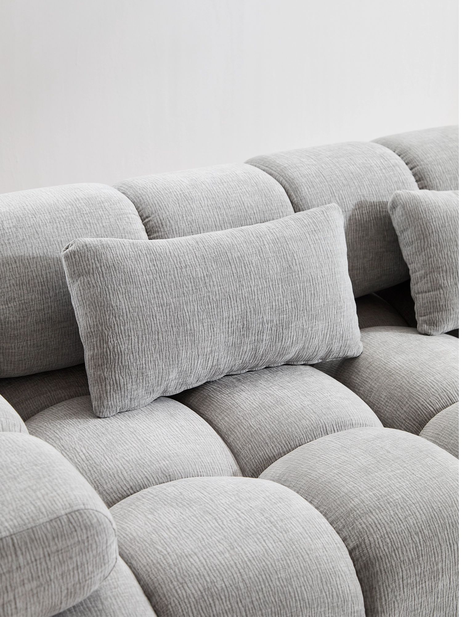 Les coussins tuftés légèrement surélevés rappellent l’aspect du pain moelleux, combinant esthétique ludique et confort ergonomique.