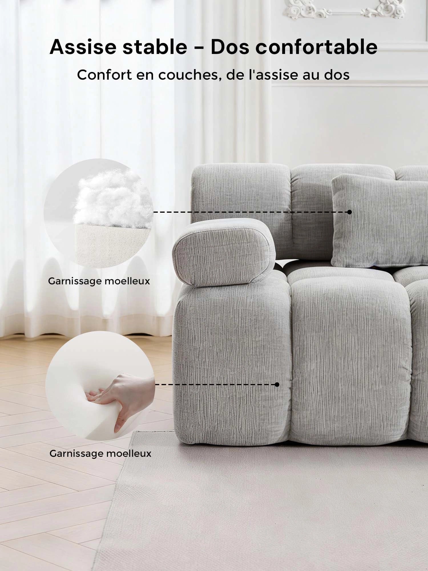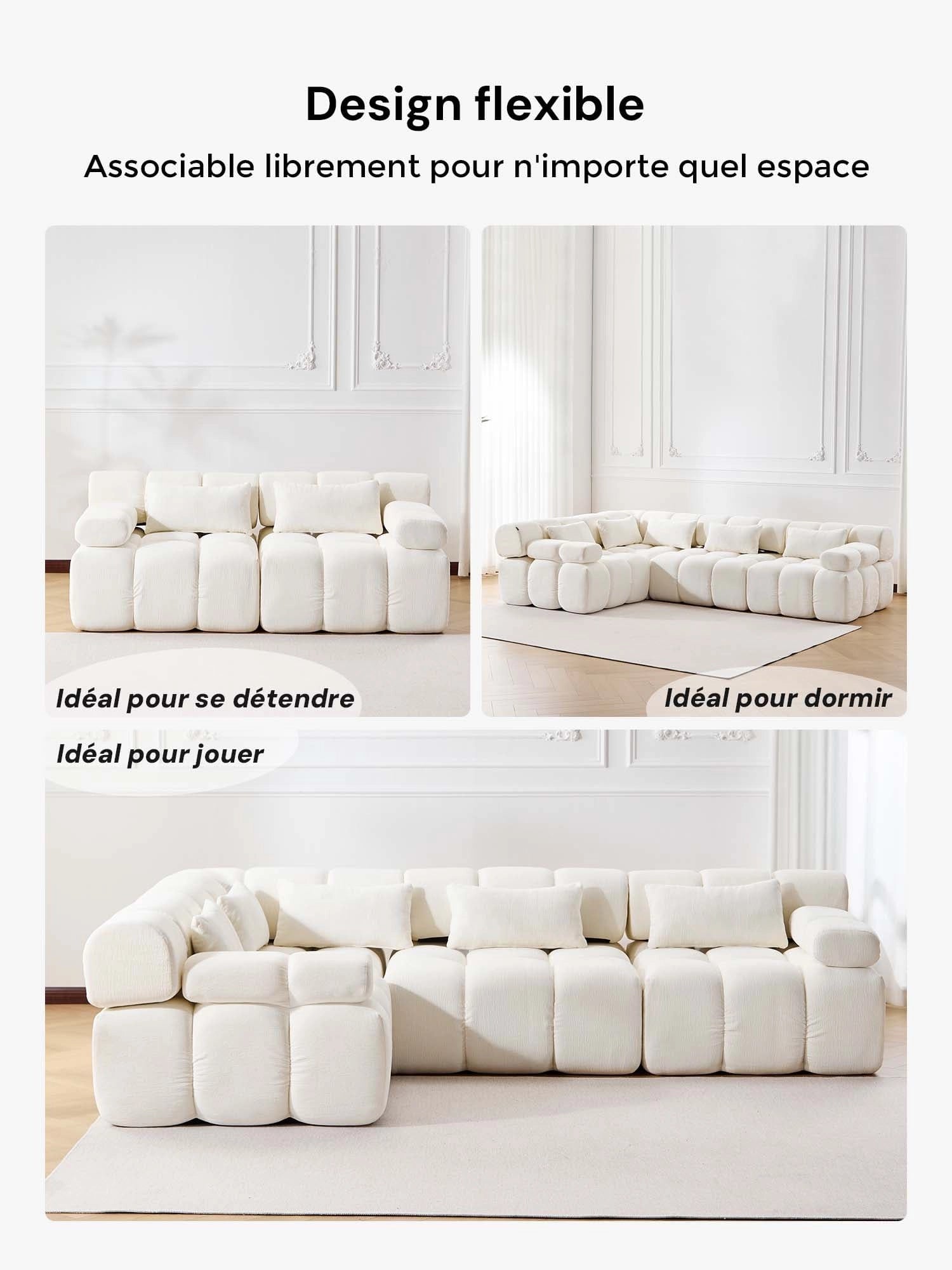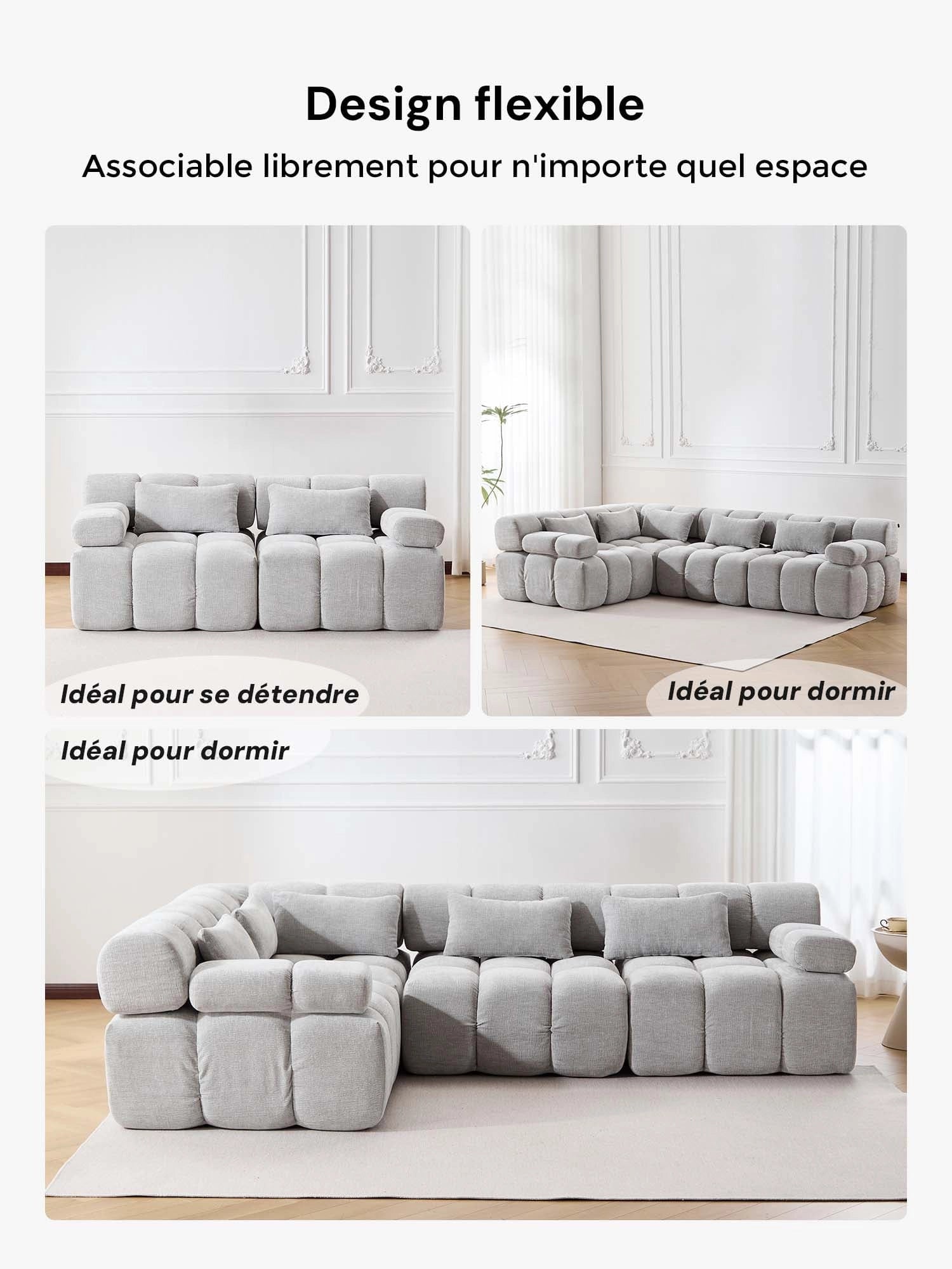 Chaque module peut être déplacé, inversé ou réorganisé : changez la position des accoudoirs ou réagencez les éléments pour créer une configuration personnalisée selon vos besoins.