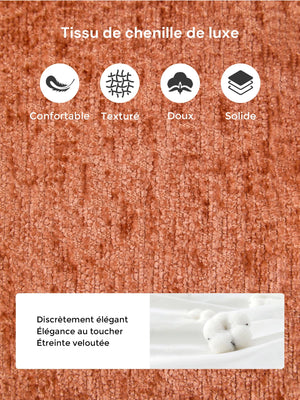 - Upholstery en chenille douce Enveloppé dans un tissu de chenille de haute qualité, le canapé offre une touche douce et hypoallergénique avec un aspect sophistiqué. Sa texture moelleuse ajoute chaleur et élégance à n'importe quel espace de vie.