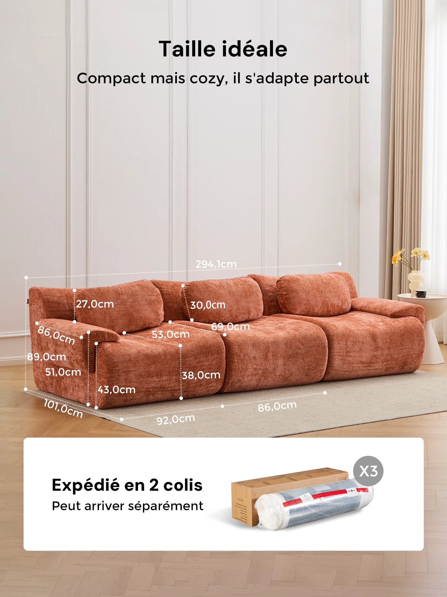 - Options d'assise flexibles Disponible en versions 2 places et 3 places, vous pouvez choisir la taille parfaite pours'adapter à la disposition de votre pièce, que ce soit pour des appartements compacts ou des salons spacieux.