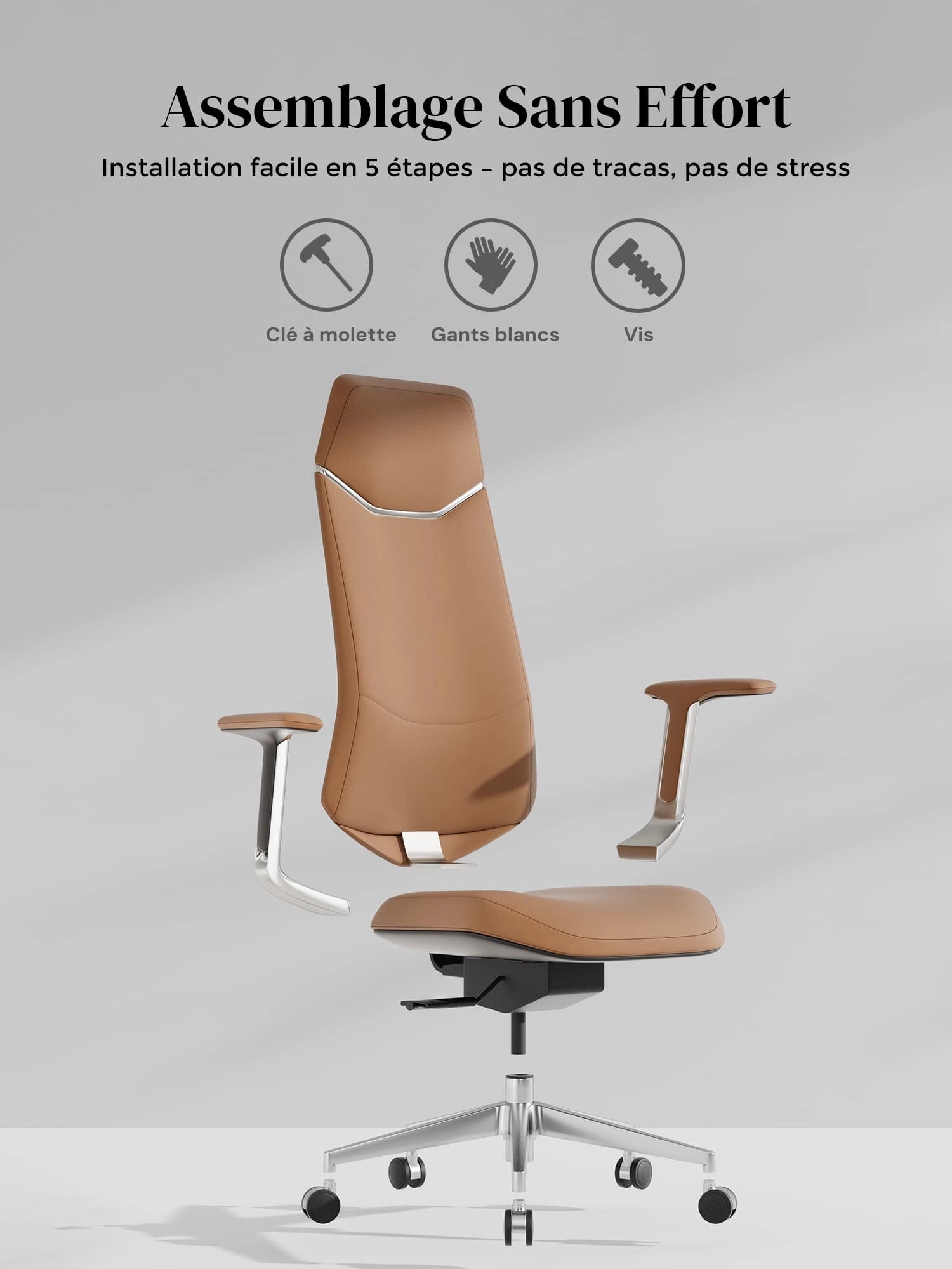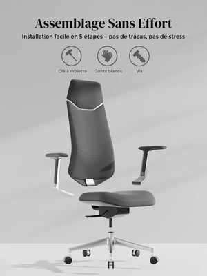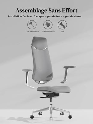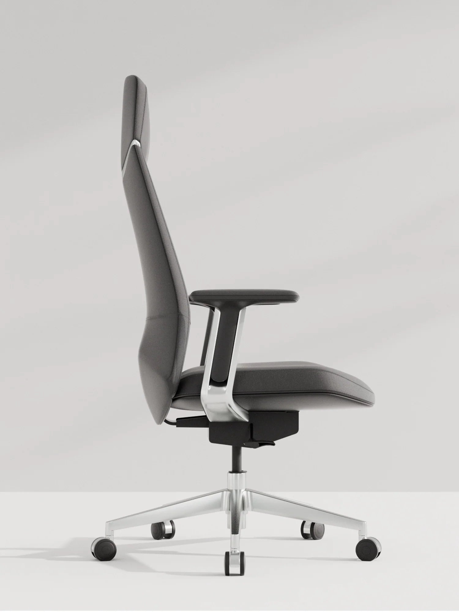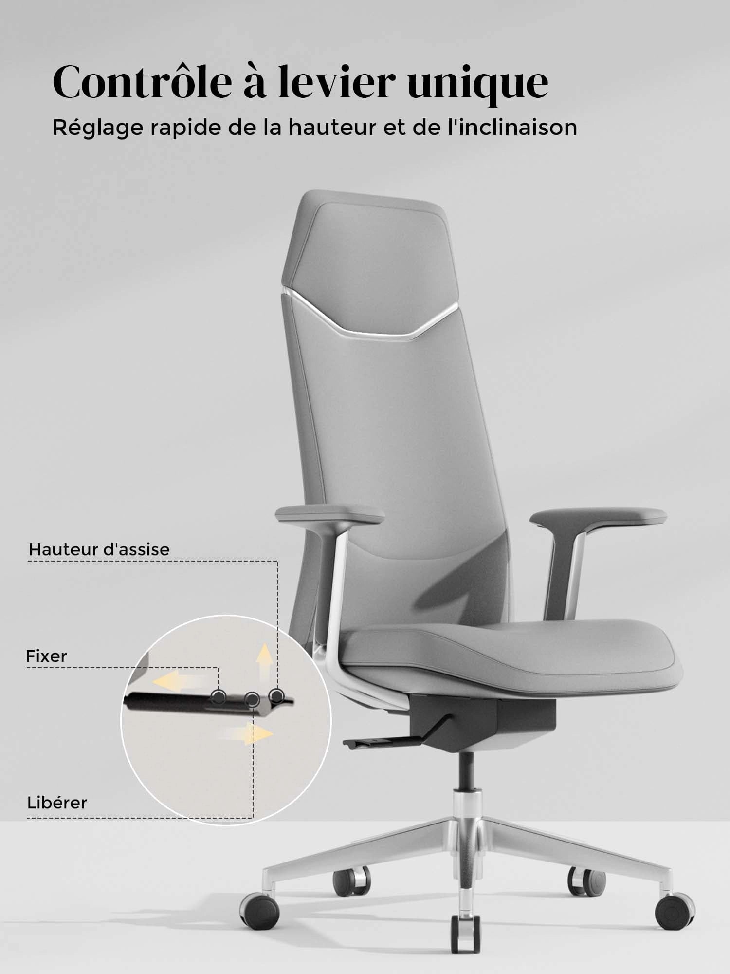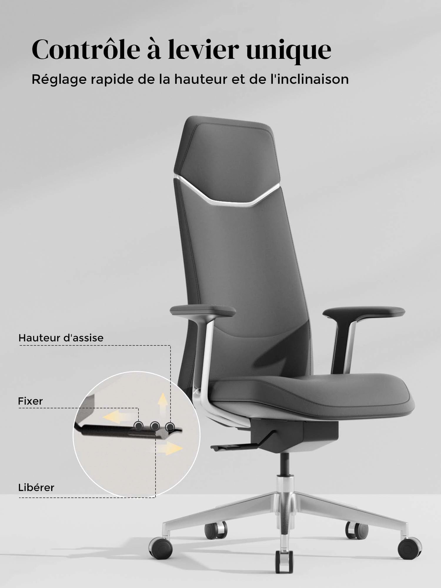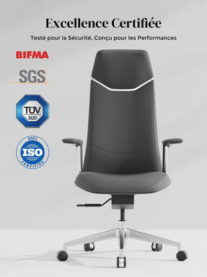 Base étoile en alliage d’aluminium poli, testée au-delà des normes BIFMA pour une solidité maximale.