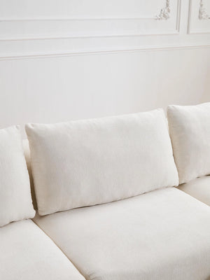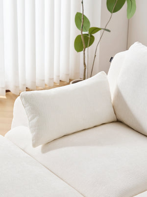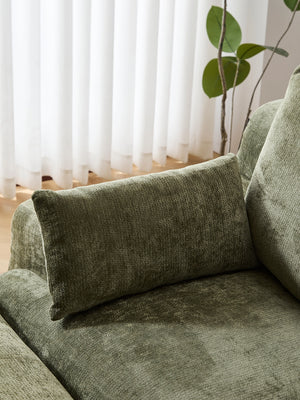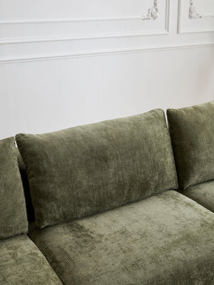 Les coussins structurés assurent un soutien fiable, tandis que les accoudoirs et angles arrondis offrent une silhouette douce et accueillante.