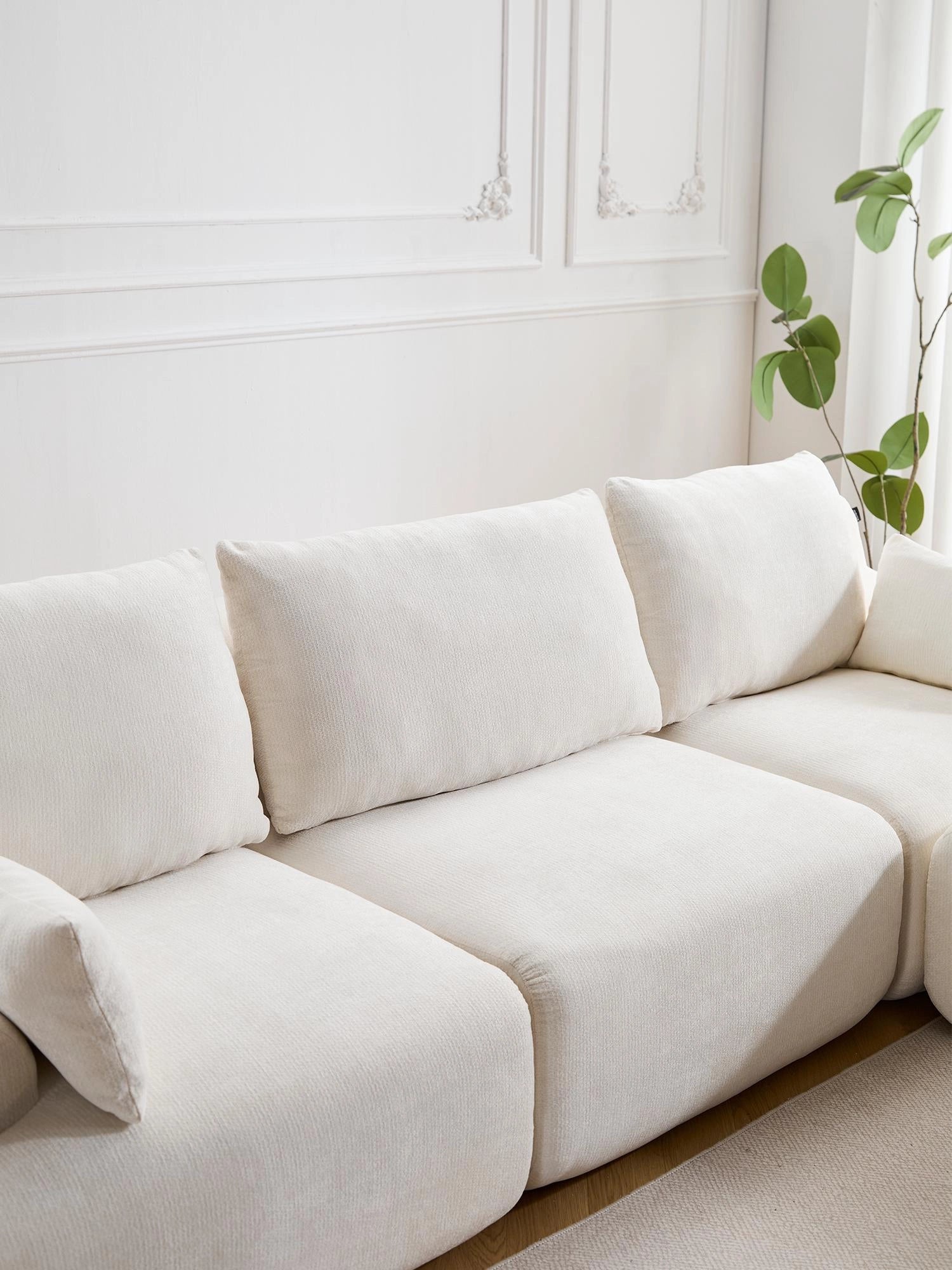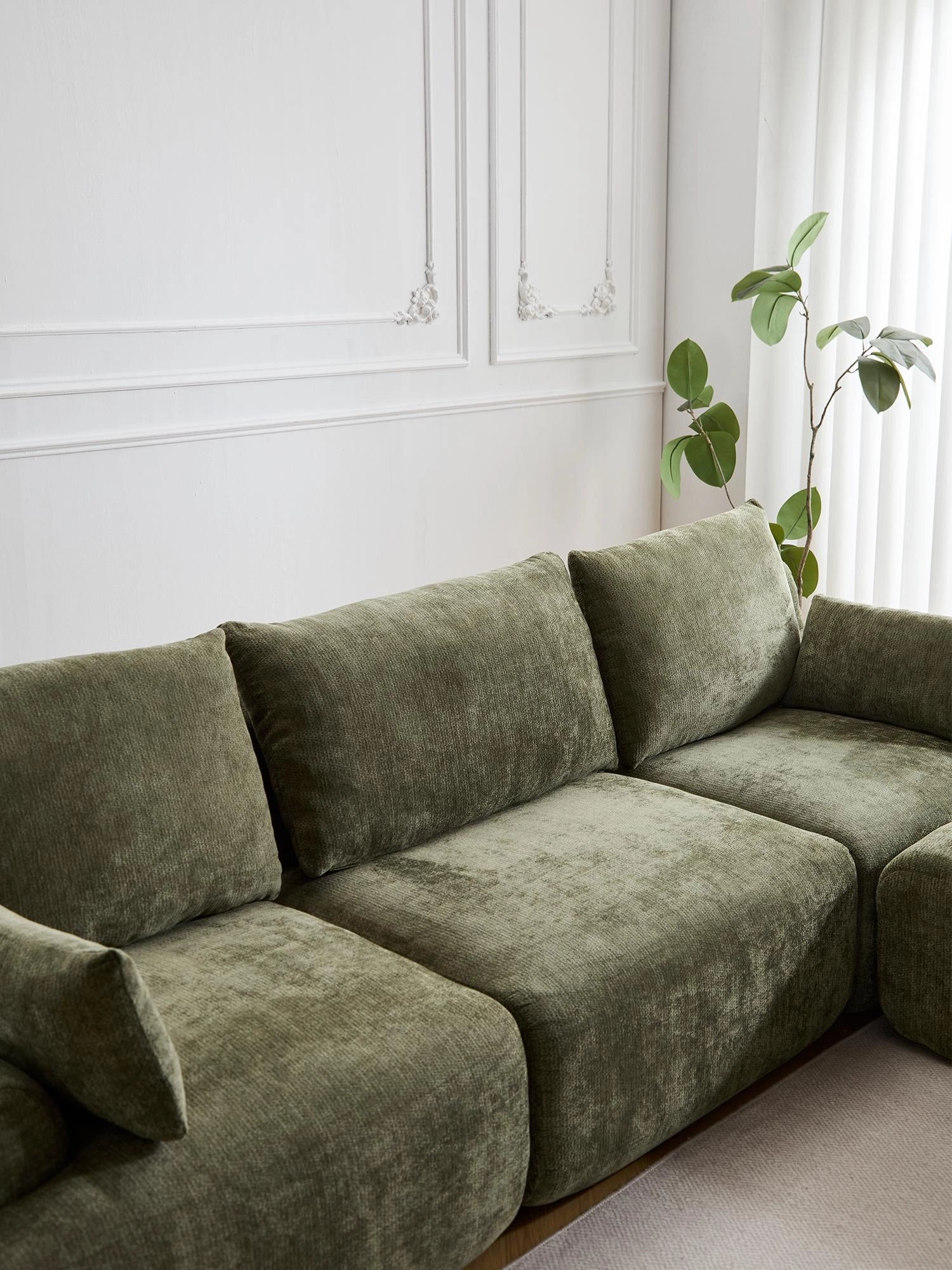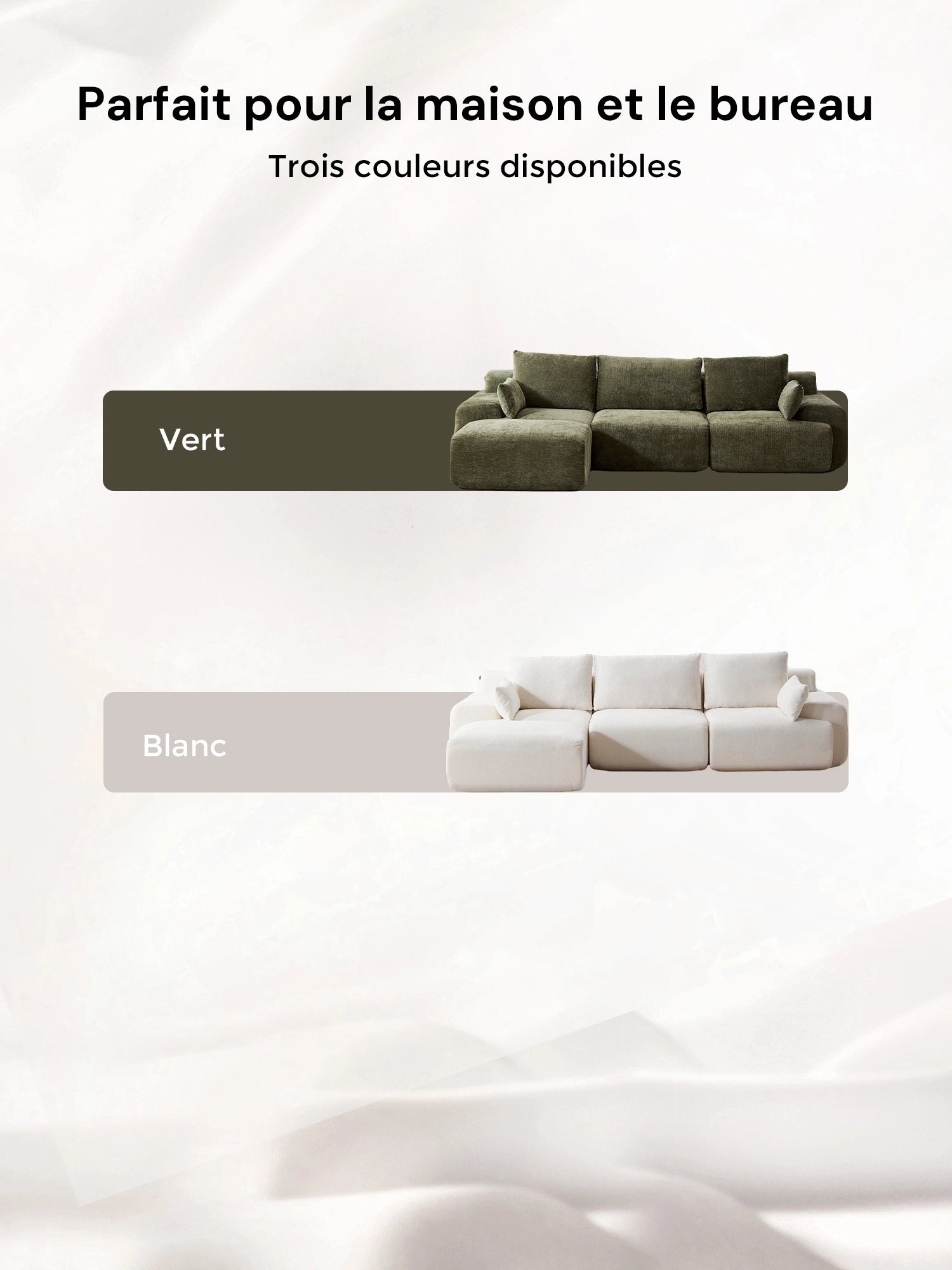 Chaque module peut être facilement repositionné pour créer des configurations flexibles : canapé droit, en L ou modules séparés selon vos besoins.